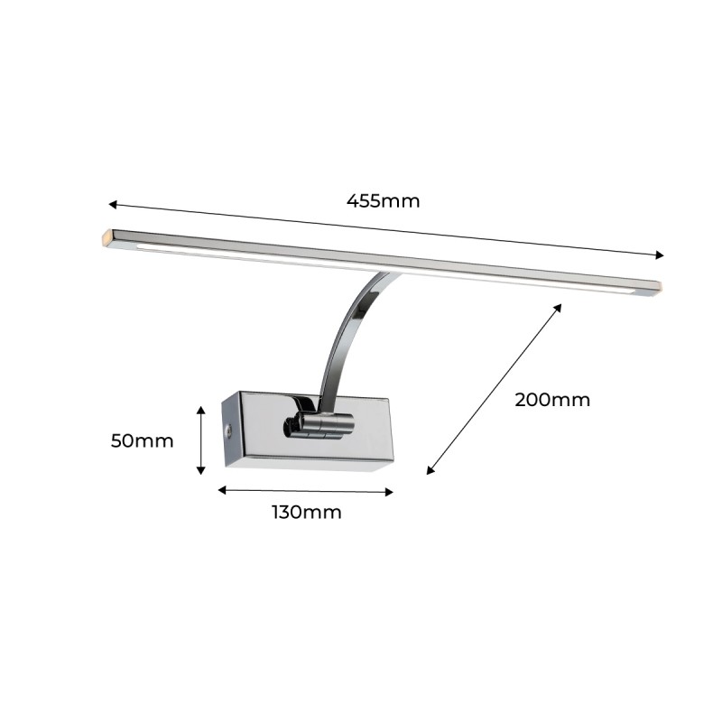 Φωτιστικό τοίχου για εικόνες LED 8W 455x200mm Αναφορά: LN1521-NS-BC Έχω παραγγείλει αυτό το φωτιστικό τοίχου. Πρέπει να μάθω, παρακαλώ, το πλάτος και το ύψος του κουτιού που προσαρμόζεται στον τοίχο του φωτιστικού τοίχου. |