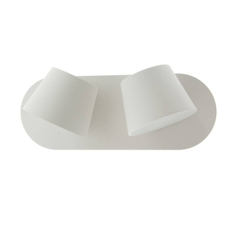Απλό και κομψό εσωτερικό φωτιστικό τοίχου, με δύο ανακλινόμενες περιστρεφόμενες κεφαλές, ώστε η δέσμη φωτός από κάθε κεφαλή του να μπορεί να κατευθύνεται ανεξάρτητα. Το ανοικτό οπτικό του 120º επιτρέπει έναν ευρύ φωτισμό σε: