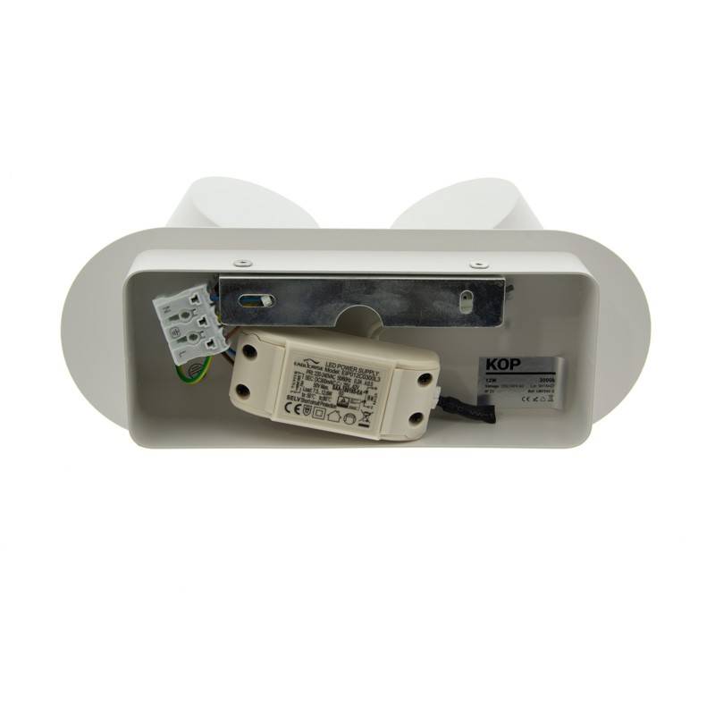 Οι περιστρεφόμενες κεφαλές του διπλού φωτιστικού τοίχου KOP ενσωματώνουν LED SMD2835 σε κάθε κεφαλή. Με κατανάλωση ενέργειας μόνο 12W, προσφέρει 1050 lumens, σε ζεστό φως 3000K. Ισοδυναμεί με δύο λαμπτήρες αλογόνου 50W έκαστος, μειώνοντας την κατανάλωση ενέργειας κατά 85%. Ο μινιμαλιστικός σκανδιναβικός σχεδιασμός του σε ματ λευκό λακαρισμένο μέταλλο θα σας επιτρέψει να τον συνδυάσετε με κάθε είδους διακόσμηση.