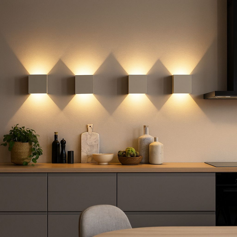 Φωτιστικό τοίχου 6W. Με κομψό και μινιμαλιστικό σχεδιασμό κύβου. Το άνοιγμα φωτός μπορεί να ρυθμιστεί από τα δύο πτερύγια που είναι διαβαθμισμένα στο εσωτερικό, αυτά μπορούν να περιστραφούν για να ρυθμίσετε τη γωνία της ποσότητας φωτός που θέλετε να εκπέμψετε. Η μέγιστη γωνία δέσμης είναι 100 μοίρες. Το φωτιστικό τοίχου αποτελείται από ένα υψηλής ποιότητας τσιπ COB, το οποίο χαρακτηρίζεται από χαμηλή κατανάλωση ενέργειας και χρησιμοποιείται συνήθως στον εσωτερικό και εξωτερικό φωτισμό και τη διακόσμηση.