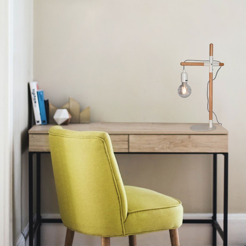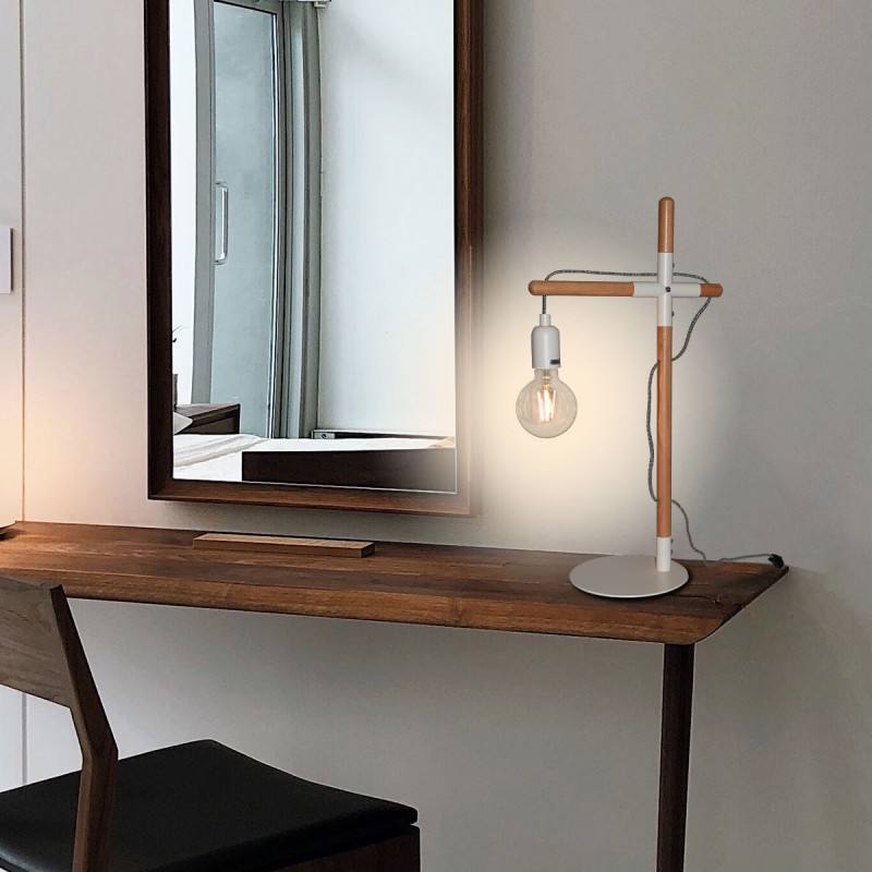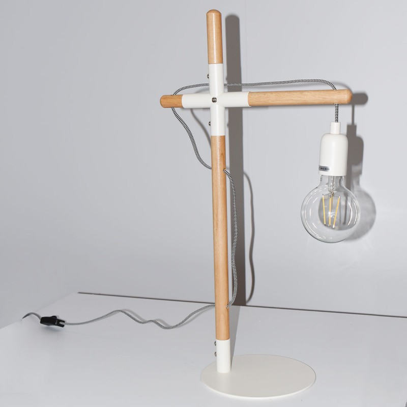 Αυτό το ξύλινο επιτραπέζιο φωτιστικό είναι σκανδιναβικής έμπνευσης, προσφέροντας ένα πολύ ιδιαίτερο στυλ. Το καλώδιο καλωδίου που συνοδεύει το φωτιστικό είναι μαύρο και λευκό, δίνοντάς του μια κομψή πινελιά, ώστε να μπορεί να συνδυαστεί σε πλήθος χώρων. Το καλώδιο που συγκρατεί την υποδοχή του λαμπτήρα E27 έχει μια πρωτότυπη διάταξη, τυλίγοντας το καλώδιο γύρω από το ξύλο του φωτιστικού σαν να ήταν εντελώς φυσικό.