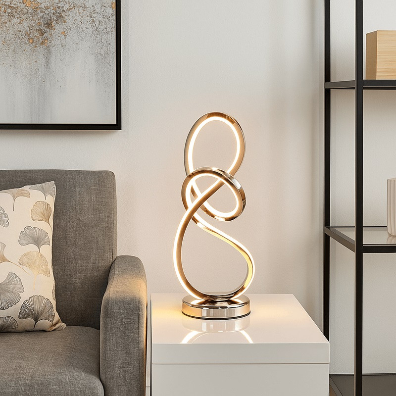 Το επιτραπέζιο φωτιστικό LOREN συνδυάζει μινιμαλιστικό σχεδιασμό και λειτουργικότητα. Η καμπύλη δομή του από επιχρωμιωμένο αλουμίνιο προσθέτει μια κομψή λεπτομέρεια σε κάθε χώρο και δημιουργεί μια ζεστή και ευχάριστη ατμόσφαιρα.