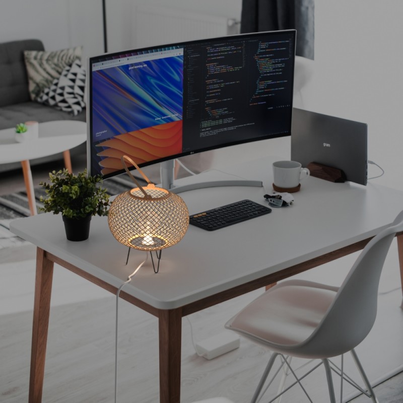 Είναι ένα τέλειο επιτραπέζιο φωτιστικό για να το τοποθετήσετε στο σαλόνι ή στο υπνοδωμάτιο, αν και ο ευέλικτος σχεδιασμός του το καθιστά προσαρμόσιμο σε διαφορετικούς χώρους του σπιτιού.
