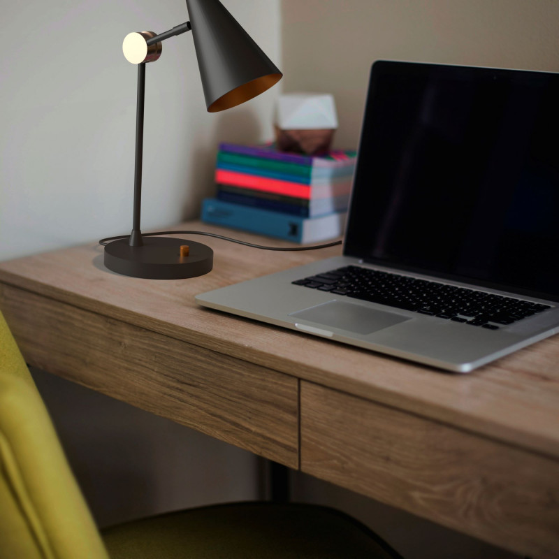 Το επιτραπέζιο φωτιστικό "Nordi" έχει σύγχρονο σχεδιασμό και δομή από αλουμίνιο που διατίθεται σε μαύρο χρώμα με ματ φινίρισμα.