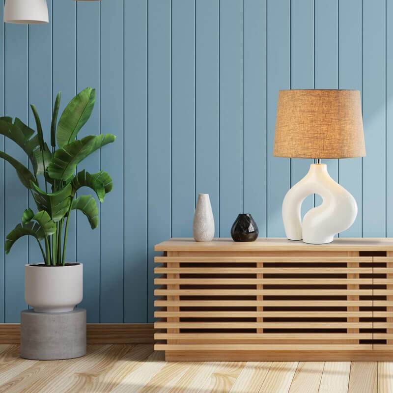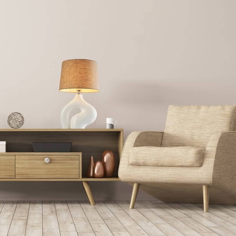 Διαθέτει βάση από ρητίνη με υψηλής ποιότητας φινιρίσματα και μπεζ υφασμάτινο κάλυμμα, το οποίο προσθέτει μια αισθητικά ευχάριστη αντίθεση, επιτρέποντας απαλό και ζεστό φωτισμό.
