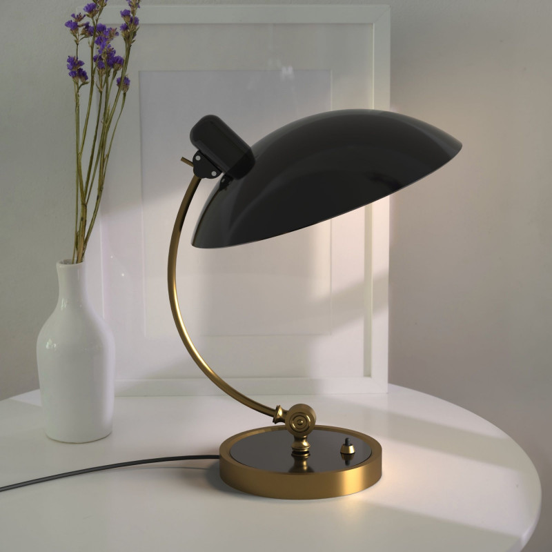 Επιτραπέζιο φωτιστικό με σύγχρονο σχεδιασμό, εμπνευσμένο από τις αρχές του κινήματος Bauhaus.