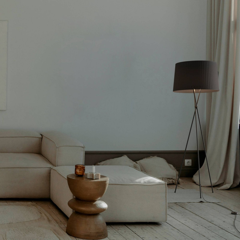 Τρίποδο φωτιστικό δαπέδου "PRON" - Βαμβακερό αμπαζούρ - E27