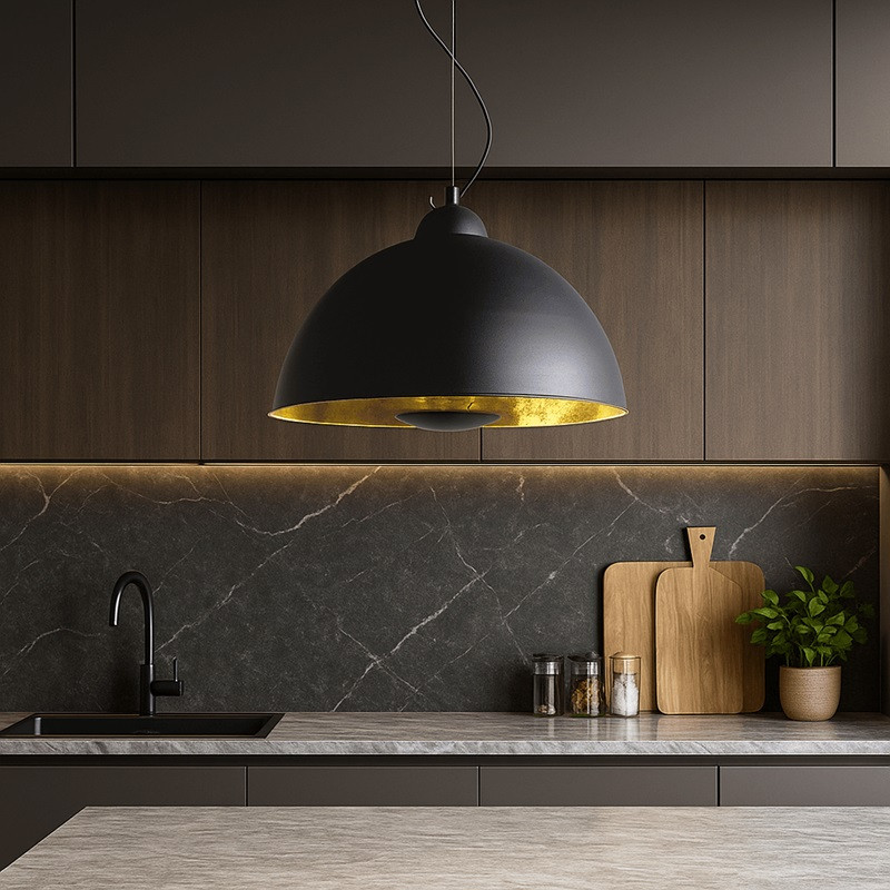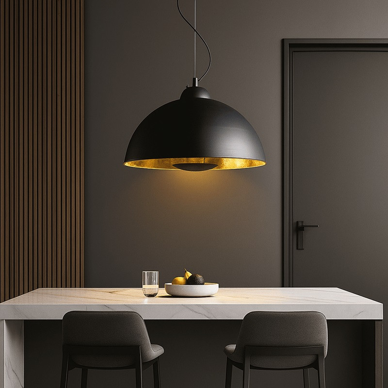 Το κρεμαστό φωτιστικό Galilei είναι ένα βασικό κομμάτι για όσους επιθυμούν να αναδείξουν την εσωτερική διακόσμηση με μια ρετρό-βιομηχανική πινελιά. Το παλαιωμένο μαύρο εξωτερικό του έρχεται σε κομψή αντίθεση με το χρυσό εσωτερικό του, δημιουργώντας ένα ζεστό, περιβάλλων φως που μεταμορφώνει κάθε δωμάτιο σε χώρο με προσωπικότητα.