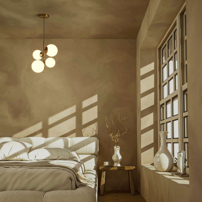 - Μινιμαλιστικός σχεδιασμός: Με 4 σφαίρες από οπαλίσιο γυαλί και δομή από αλουμίνιο σε φινίρισμα χρυσού ή χρωμίου, αυτό το φωτιστικό αποτελεί ιδανικό συμπλήρωμα για εσωτερικούς χώρους με διαφορετικά διακοσμητικά στυλ.