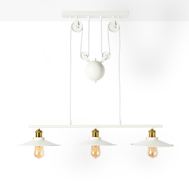 Κρεμαστό φωτιστικό "CLOCK WORK": δομή τροχαλίας και ρυθμιζόμενο ύψος.
