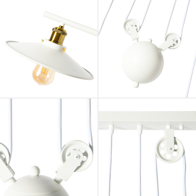 - Ρυθμιζόμενο σύστημα τροχαλιών: Επιτρέπει την εύκολη και αβίαστη ρύθμιση του ύψους. Περιλαμβάνει πλευρικές τροχαλίες, αναδιπλούμενα καλώδια βαρέως τύπου και μια κεντρική τροχαλία με αντίβαρο που διατηρεί το φωτιστικό σταθερό στην επιθυμητή θέση.