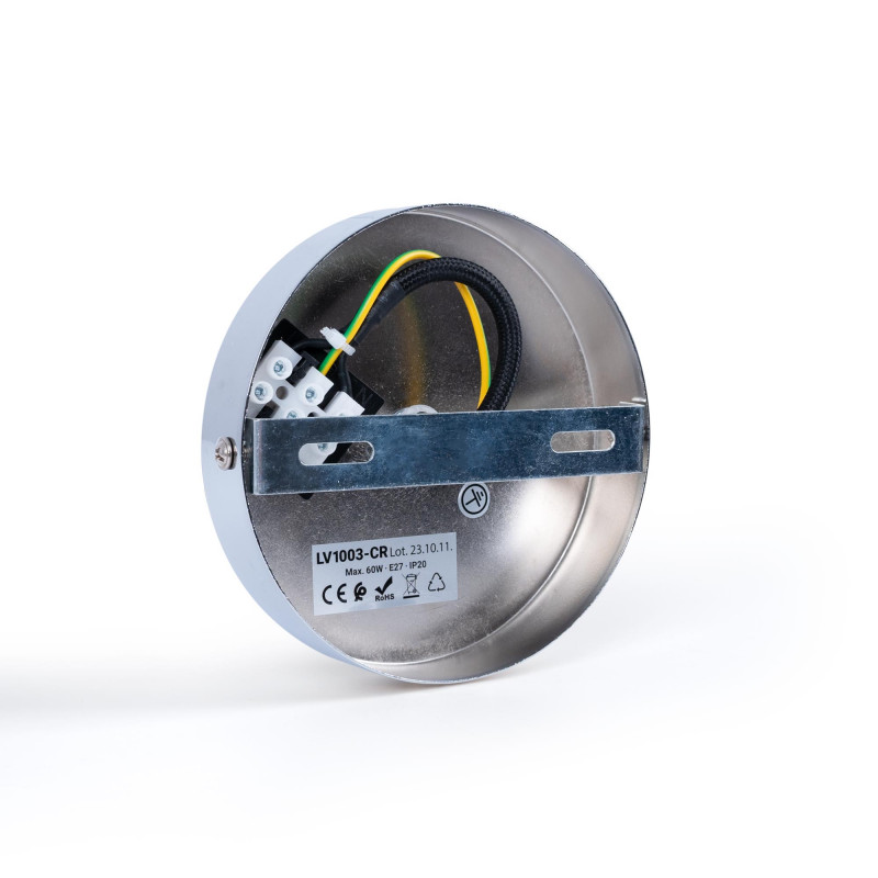 Συνοδεύεται από ένα μαύρο υφασμάτινο καλώδιο και ροζέτα μήκους 1,9 μέτρων, ρυθμιζόμενου ύψους.