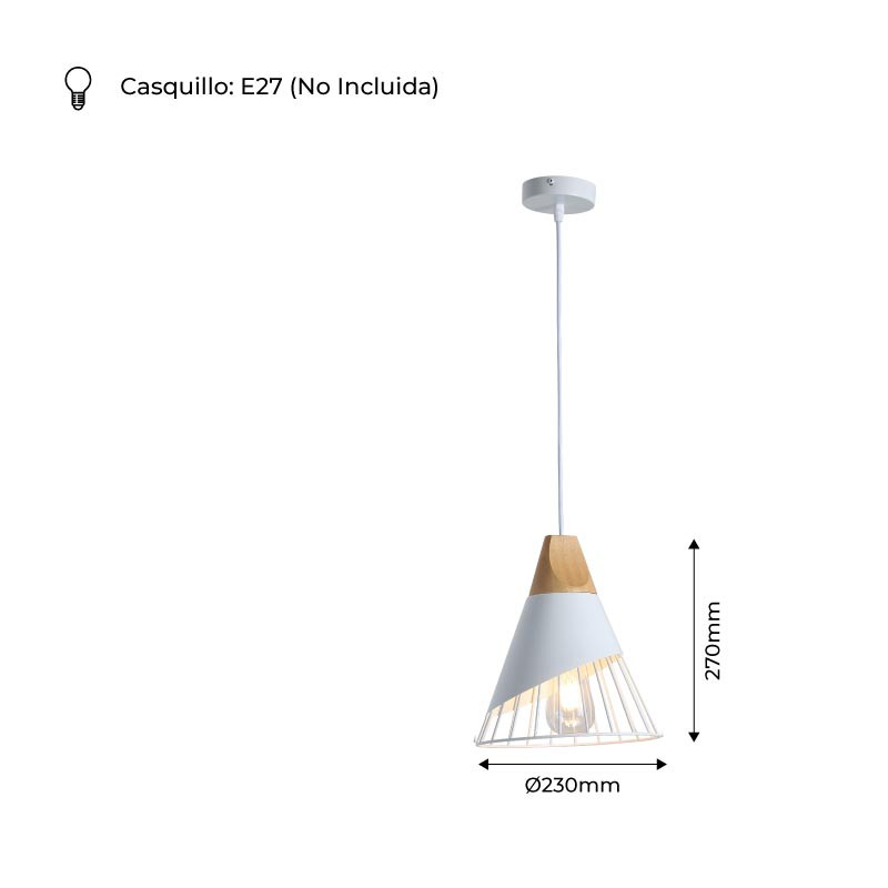 Κατασκευασμένο από αλουμίνιο και σίδηρο, έχει πρωτότυπο σχεδιασμό που επιτρέπει στον λαμπτήρα να ξεχωρίζει. Επιπλέον, προσθέτει μια φυσική ξύλινη λεπτομέρεια, η οποία δίνει μια ζεστή και εκλεπτυσμένη εμφάνιση στο σύνολο.