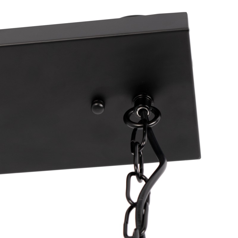 Η δομή του στηρίζεται κομψά από την οροφή με δύο μεταλλικές αλυσίδες που του προσδίδουν μια στιβαρή και εκλεπτυσμένη εμφάνιση. Αυτές οι αλυσίδες σας επιτρέπουν επίσης να ρυθμίζετε το ύψος του φωτιστικού, προσαρμόζοντάς το στις ιδιαίτερες ανάγκες και προτιμήσεις σας.