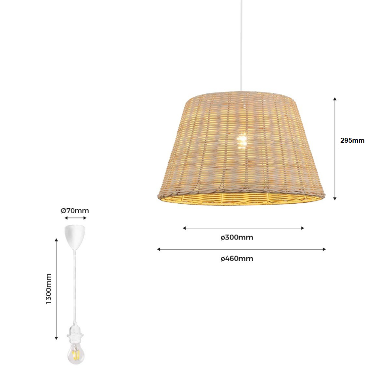 Αυτό το φωτιστικό δέχεται οποιαδήποτε λάμπα E27 ισχύος έως 60W (δεν περιλαμβάνεται) και διαθέτει 3 επιλογές fleuron και ρυθμιζόμενου σε ύψος καλωδίου, ανάλογα με το περιβάλλον με το οποίο θέλετε να το συνδυάσετε (λευκό, μαύρο και φυσικό σχοινί).