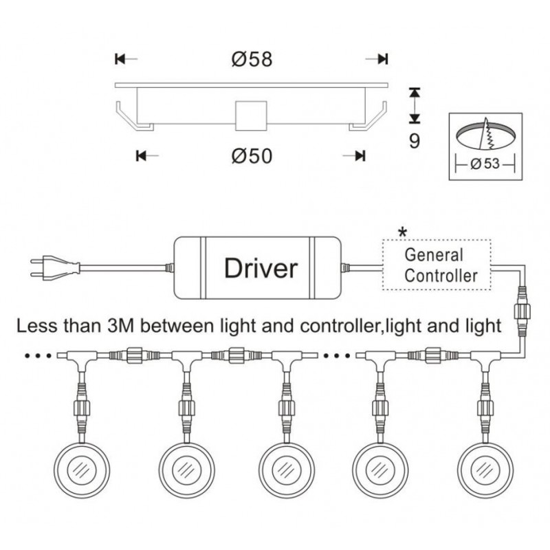 - Διαστάσεις των φάρων: Ø58x9mm