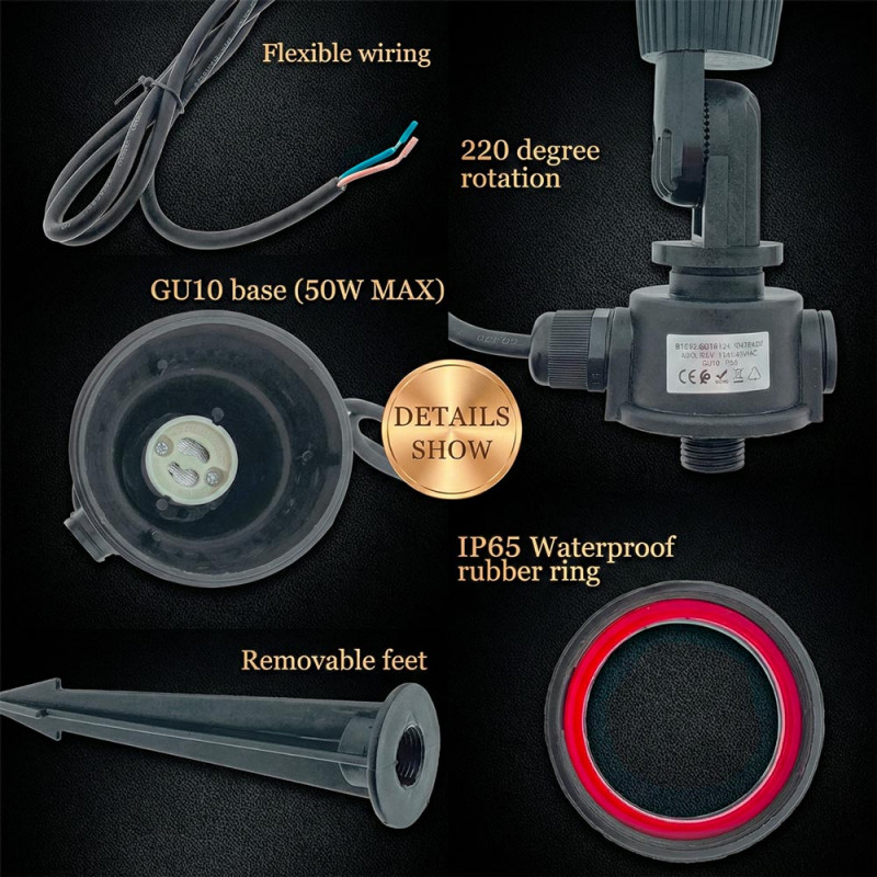 Οι αδιάβροχοι λαμπτήρες LED GU10 μαζί με το καρφί κήπου είναι ιδανικοί για τον φωτισμό οποιουδήποτε εξωτερικού χώρου. Μπορείτε να τις τοποθετήσετε σε οποιοδήποτε είδος βλάστησης, χώμα, γλάστρες, φυτά, άμμο ή γρασίδι και θα φαίνονται πολύ διακοσμητικές καθώς και θα φωτίζουν ό,τι θέλετε.
