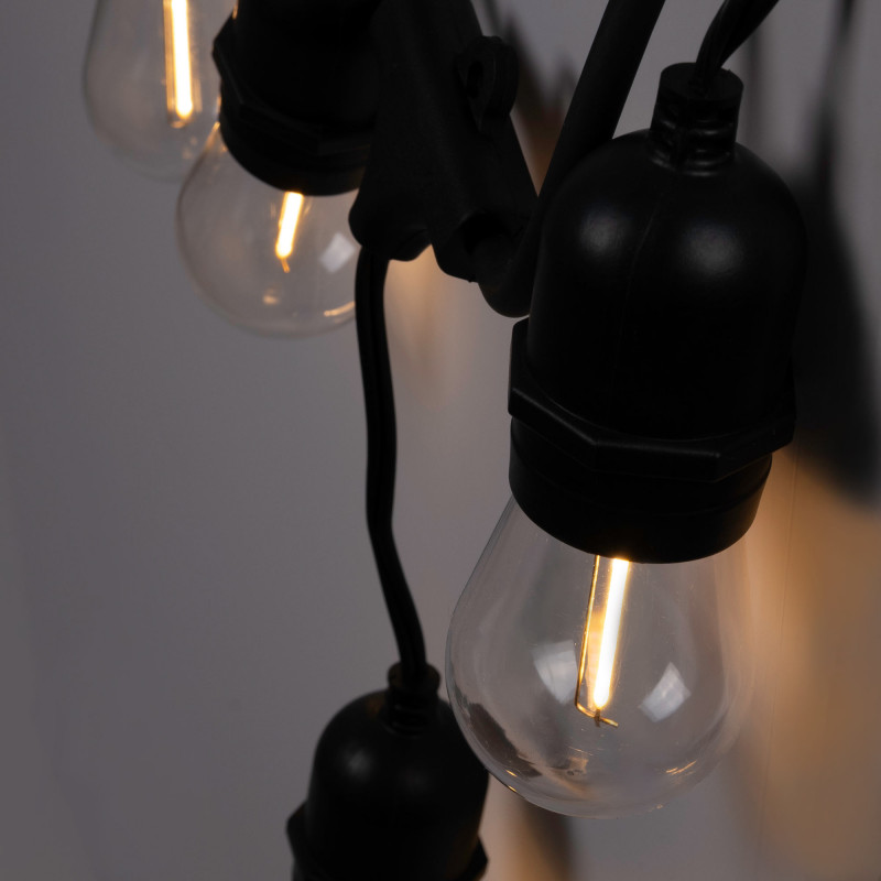 Κιτ γιρλάντα εξωτερικού φωτισμού 11,5 μέτρα + 10 λαμπτήρες LED E27 πυράκτωσης 1W - IP44 - Θερμό Λευκό