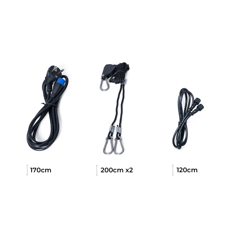 Αυτό το φως ανάπτυξης LED είναι εξοπλισμένο με κιτ ανάρτησης για εύκολη ρύθμιση του ύψους. Επιπλέον, συνοδεύεται από καλώδιο με βύσμα ευρώ, το οποίο καθιστά δυνατή την εγκατάσταση του φωτιστικού σε σημεία όπου δεν υπάρχουν σημεία φωτισμού.