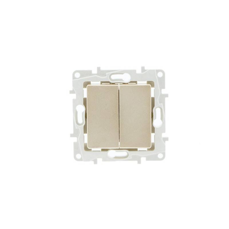 Μηχανισμός με λειτουργία διακόπτη που αποτελείται από δύο μέρη (ελέγχει δύο ανεξάρτητα κυκλώματα), χωρίς διακόπτη. Ο διακόπτης δύο τμημάτων έχει σχεδιαστεί για εσοχή σε τυποποιημένα κουτιά γενικής χρήσης. Τα καλώδια στερεώνονται μέσω ακροδεκτών ταχείας σύνδεσης χωρίς βίδες.