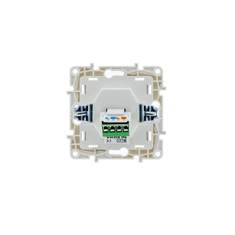 Εντοιχιζόμενη τηλεφωνική πρίζα με γενική σύνδεση RJ11. Μηχανισμός σχεδιασμένος για εσοχή σε πρίζες γενικής χρήσης, αν και περιλαμβάνει οπίσθια νύχια για την προσαρμογή σε μη τυποποιημένες πρίζες.