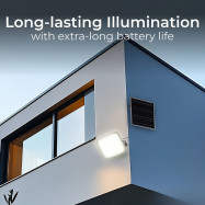 - Λειτουργεί με ηλιακή ενέργεια και αποδοτική μπαταρία: Φορτίζεται πλήρως σε 8 ώρες από μονοκρυσταλλικό ηλιακό πάνελ. Ενσωματωμένη μπαταρία Li-ion 32700 3.2V 20000 mAh, η οποία εγγυάται έως και 10 ώρες συνεχούς λειτουργίας σε πλήρη ισχύ.