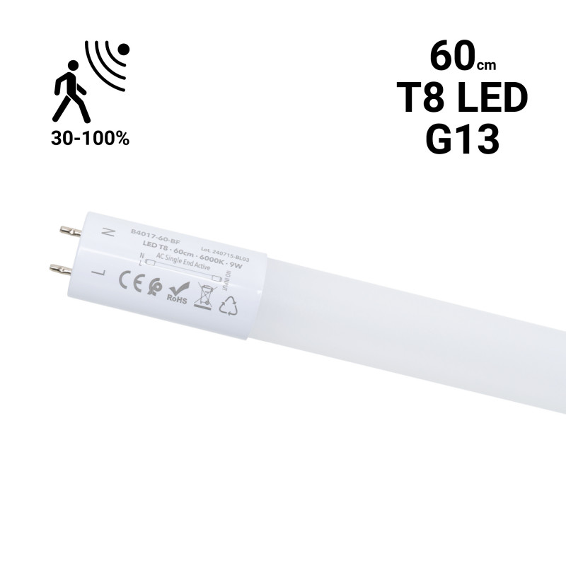 Τουβλο LED T8 με αισθητήρα κίνησης μικροκυμάτων 30-100% - 9W - 60 εκ. - 6000K