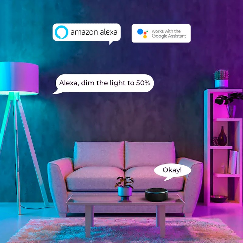 Χρησιμοποιήστε το smartphone σας για να ελέγχετε από απόσταση τον έξυπνο λαμπτήρα σας οπουδήποτε και οποτεδήποτε. Με πολλαπλές επιλογές: ενεργοποιήστε ή απενεργοποιήστε τα φώτα, χαμηλώστε ή φωτίστε, ορίστε μια ώρα για αυτόματο κλείσιμο κ.λπ. Για παράδειγμα, μπορείτε να πείτε: "Alexa, άλλαξε τα φώτα σε κίτρινα" ή "Ok Google, άναψε τα φώτα του σαλονιού".