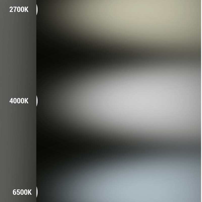 - Ρυθμιζόμενη θερμοκρασία χρώματος: Σύστημα CCT με διακόπτη βύθισης για την επιλογή μεταξύ ζεστού λευκού (2700K), ουδέτερου (4000K) ή ψυχρού λευκού (6500K).