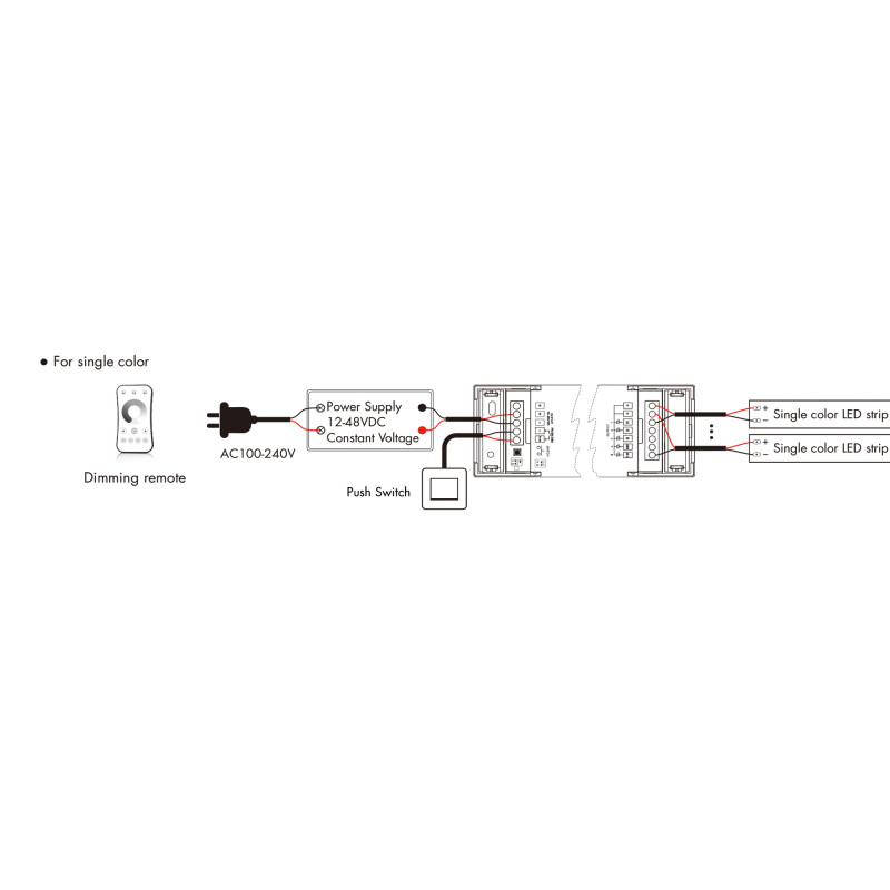 - Συμβατότητα: Συμβατό με ταινίες LED μονόχρωμες, CCT, RGB, RGBW και RGB + CCT 12-48V.