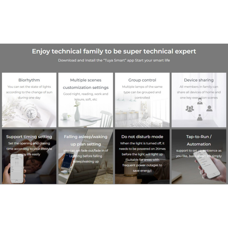 - Συμβατότητα WiFi: Έλεγχος μέσω WiFi μέσω της εφαρμογής TUYA και των φωνητικών βοηθών (Alexa, Google).