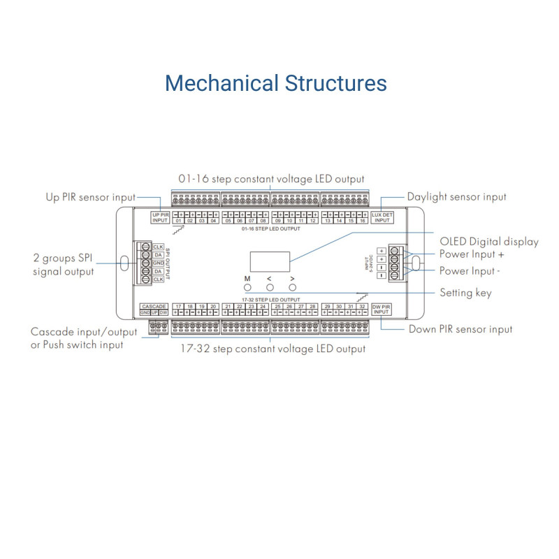 Ο ελεγκτής είναι εξοπλισμένος με οθόνη OLED και 3 κουμπιά για εύκολη διαμόρφωση και ρύθμιση των επιλογών φωτισμού.