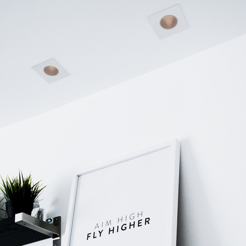 KIT Τετράγωνος δακτύλιος κάτω φωτισμού 93x93mm (λευκό/σαμπάνια) + Λαμπτήρας GU10 5,4W + υποδοχή λαμπτήρα
