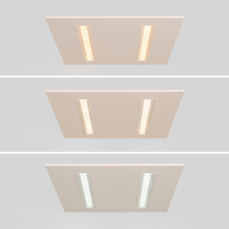 - Ρυθμιζόμενη απόχρωση: Σύστημα CCT για ρύθμιση της θερμοκρασίας χρώματος μεταξύ: ζεστού λευκού (3000K), ουδέτερου λευκού (4000K) και ψυχρού λευκού (6500K). Ο έλεγχος γίνεται μέσω ενός διακόπτη που είναι ενσωματωμένος στον πίνακα.