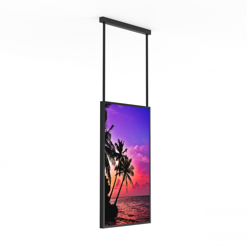 Αυτή η οθόνη είναι ειδικά σχεδιασμένη για βιτρίνες καταστημάτων με εγκατάσταση στην οροφή, επιτρέποντας έτσι στο να αξιοποιήσει στο έπακρο τον χώρο χωρίς εμπόδια ή κατασκευές στο δάπεδο. Επιτρέπει την προβολή διαφημιστικών βίντεο, εικόνων, ειδικών προσφορών ή ανακοινώσεων νέων προϊόντων, προσελκύοντας την προσοχή από μακριά. Ιδανικό για καταστήματα που αναζητούν ένα καθαρό, μοντέρνο και ιδιαίτερα αποτελεσματικό οπτικό αποτέλεσμα.