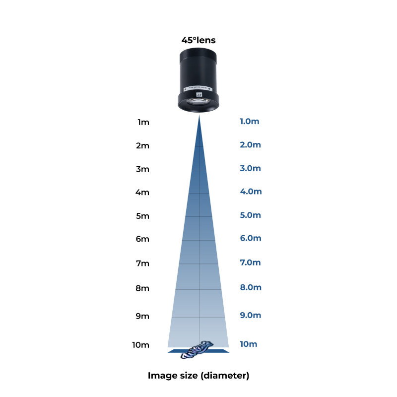 - Οπτική 45°: Εξοπλισμένος με οπτική 45°, αυτός ο προβολέας παρέχει ευρεία κάλυψη, ιδανική για την ανάδειξη λογότυπων και μηνυμάτων σε μεγάλες επιφάνειες και ποικίλες επιφάνειες. Διατίθενται και άλλες επιλογές οπτικών (βλ. σχετικά προϊόντα).