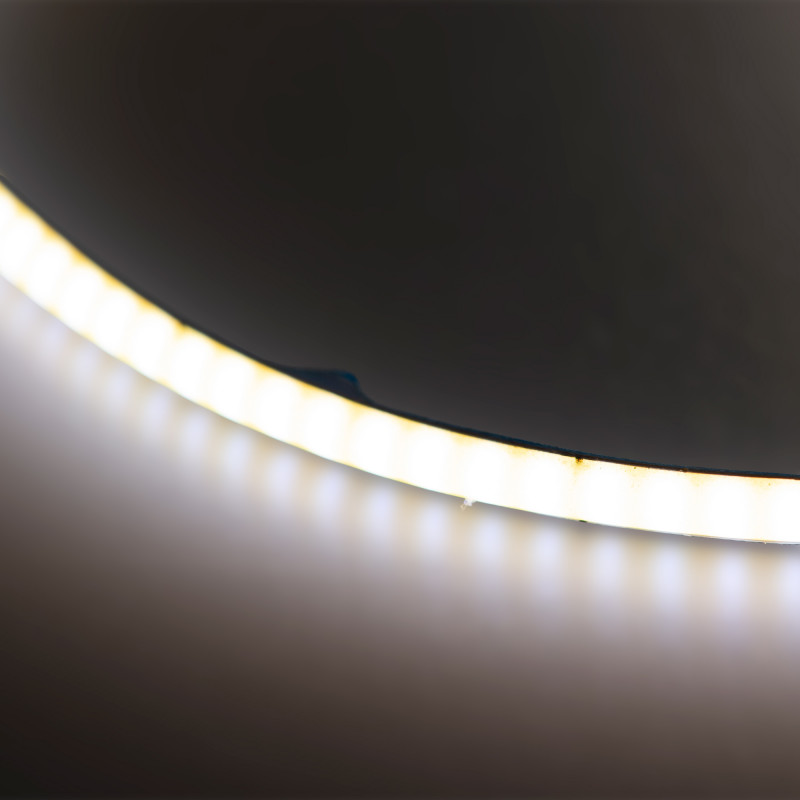 Αυτή η λωρίδα LED ενσωματώνει τεχνολογία COB, η οποία της επιτρέπει να εκπέμπει συνεχές φως, χωρίς ορατά σημεία, και συνιστάται ιδιαίτερα όταν είναι επιθυμητός ομοιογενής φωτισμός, για εργασίες με ανακλαστικές επιφάνειες ή για τη χρήση διαφανών διαχυτών.