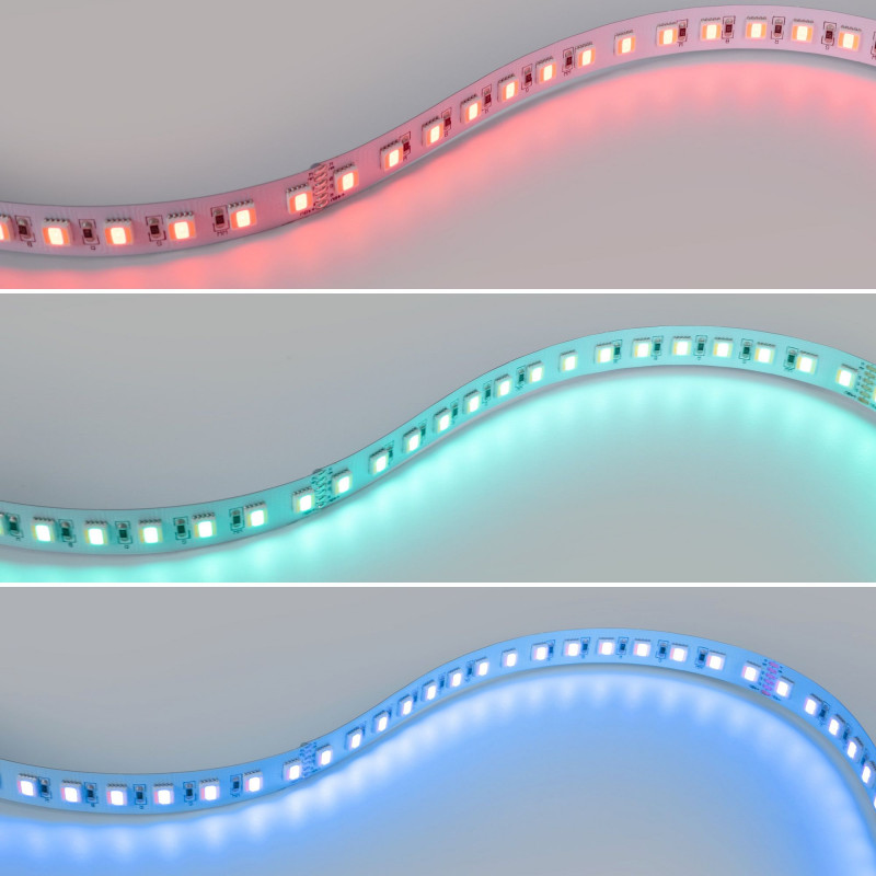 - Χρωματική ευελιξία: Καθώς πρόκειται για ταινία RGB+CCT, σας επιτρέπει να δημιουργήσετε εξατομικευμένες ατμόσφαιρες με ένα ευρύ φάσμα χρωμάτων και θερμοκρασιών λευκού, από ζεστό έως ψυχρό, προσαρμόζοντας το σε κάθε τύπο διακόσμησης ή εκδήλωσης.