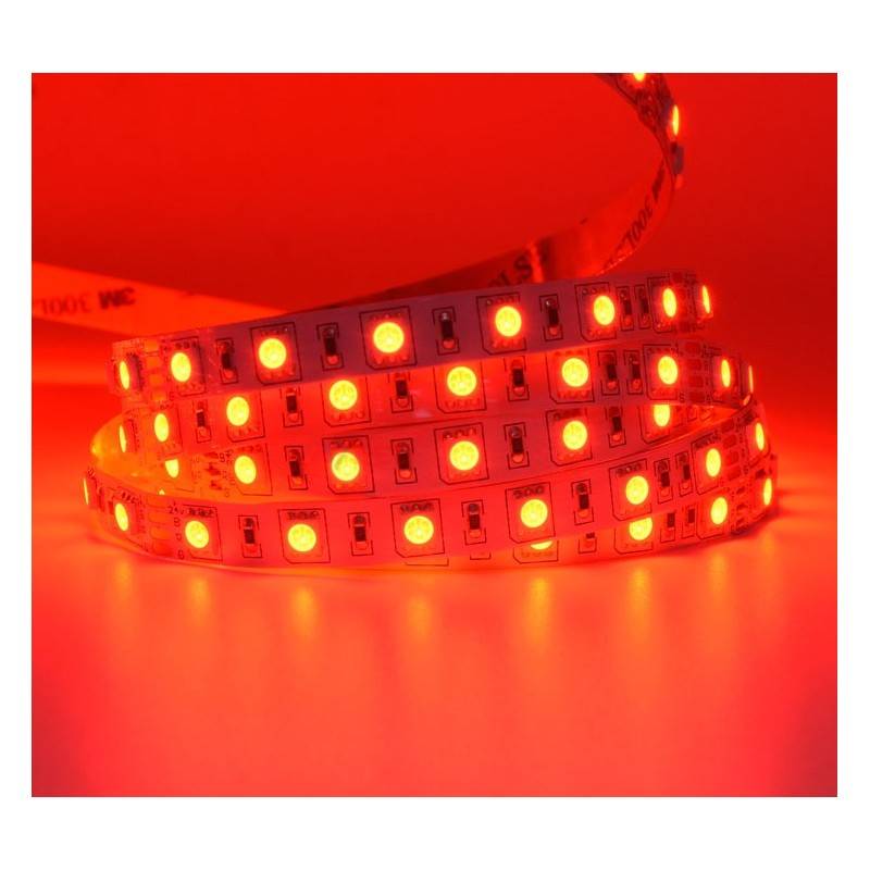 Αυτή η σειρά επαγγελματικών ταινιών LED RGB διαθέτει 60 τσιπ ανά μέτρο, επιτυγχάνοντας μια απόλυτα ομοιογενή δέσμη. Η λωρίδα LED ή RGB μπορεί να παράγει σχεδόν οποιοδήποτε χρώμα φωτός μπορεί να φανταστεί κανείς, ο περιορισμός καθορίζεται πάντα από τον ελεγκτή RGB στον οποίο είναι συνδεδεμένη (ο ελεγκτής πωλείται ξεχωριστά).