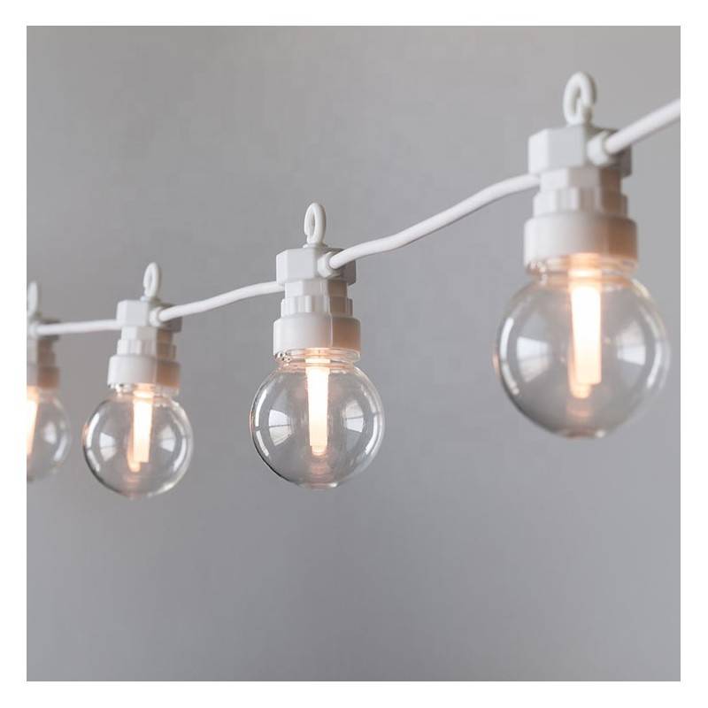 Guirnaldas LED con una temperatura de color tonalidad cálida de 3000 grados Kelvin. Escoge la Guirnalda LED diseñada de forma compacta e integrada con 10 bombillas emite una potencia de 2W, una intensidad lumínica de 400 lúmenes y un ángulo de apertura del haz de luz de 360 grados. Dispone de grado de protección IP 44 que la hace resistente a la humedad (no apta para exponer al agua ni a la lluvia). Cableado y casquillo blanco con diez bombillas.