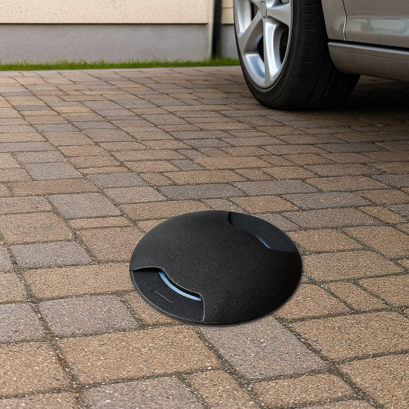 Baliza empotrable en suelo para decoración e iluminación de caminos en exterior, de forma original, moderna y especial. La baliza CECI 90 2L está fabricada en resina, resistente a golpes y a condiciones climatológicas adversas. El foco empotrable CECI 90 2L está formado por una carcasa circular empotrable de color blanco, totalmente desmontable, que aloja todas las conexiones eléctricas y la bombilla LED GU10. La cubierta está formada por una tapa de resina que lleva dos ranuras laterales, por las cuales se emite la luz. La baliza ilumina lateralmente, bañando el suelo en forma de aspas. Todo el sistema se fija mediante rosca, no lleva tornillos visibles y todas las ranuras llevan juntas estancas de goma para garantizar la impermeabilidad del conjunto.