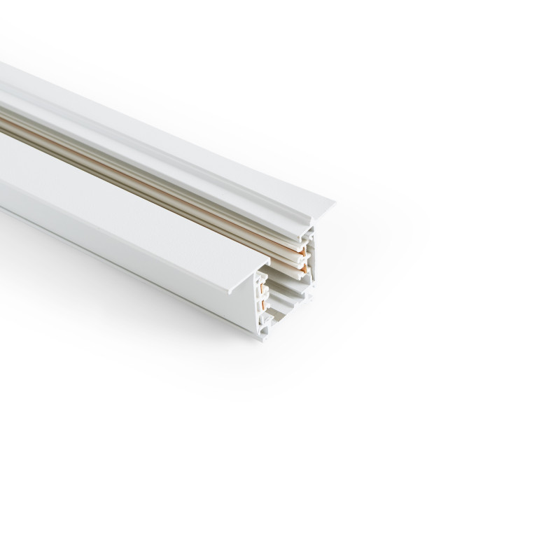 Carril de 2 metros para proyectos de iluminación técnica y decorativa. Permite conectar y mover focos LED, con tres circuitos eléctricos independientes para mayor control y personalización.