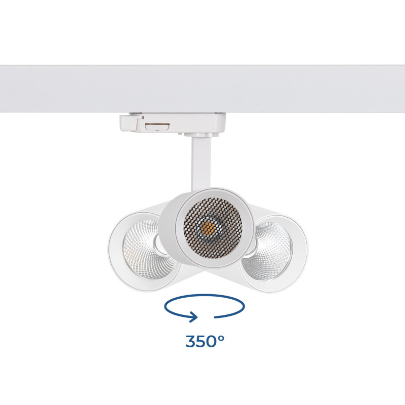 Este proyector LED para carril trifásico destaca por su fiabilidad y una excelente reproducción de color, ideal para resaltar productos o detalles en espacios comerciales.
