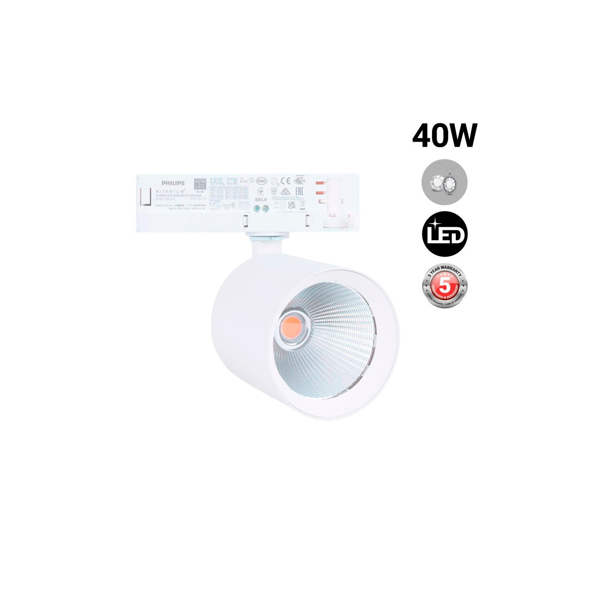Proyector LED para carril trifásico - 40W - Joyerías - Driver Philips Xitanium