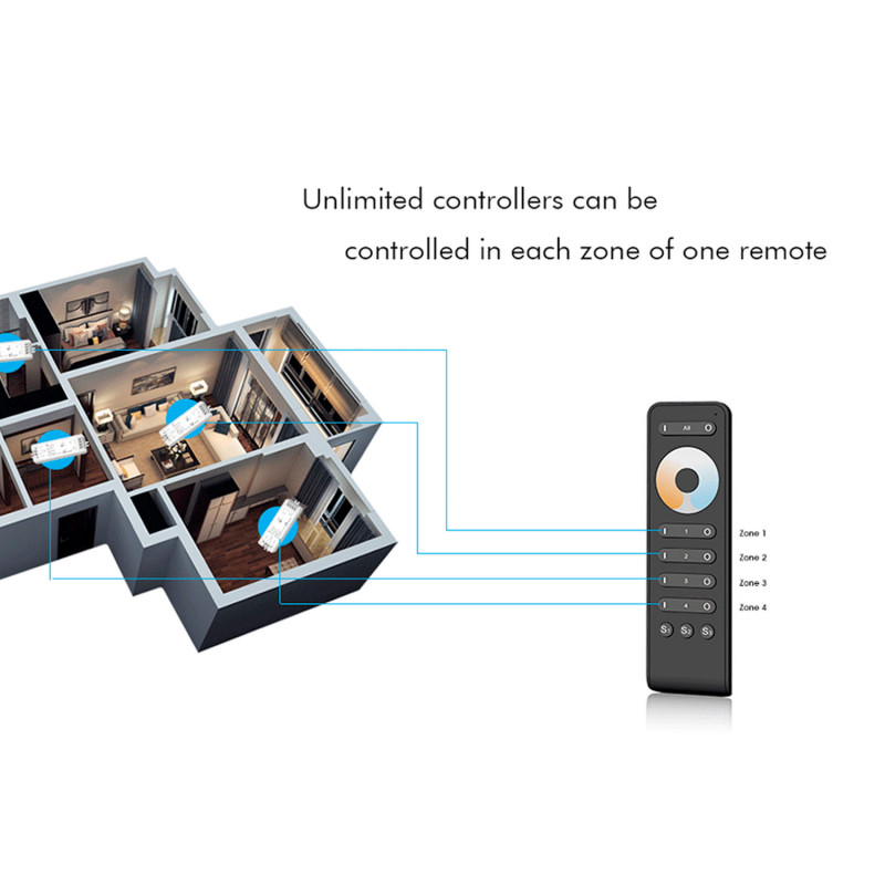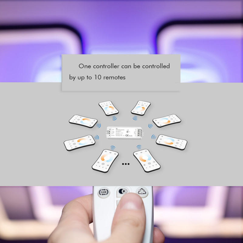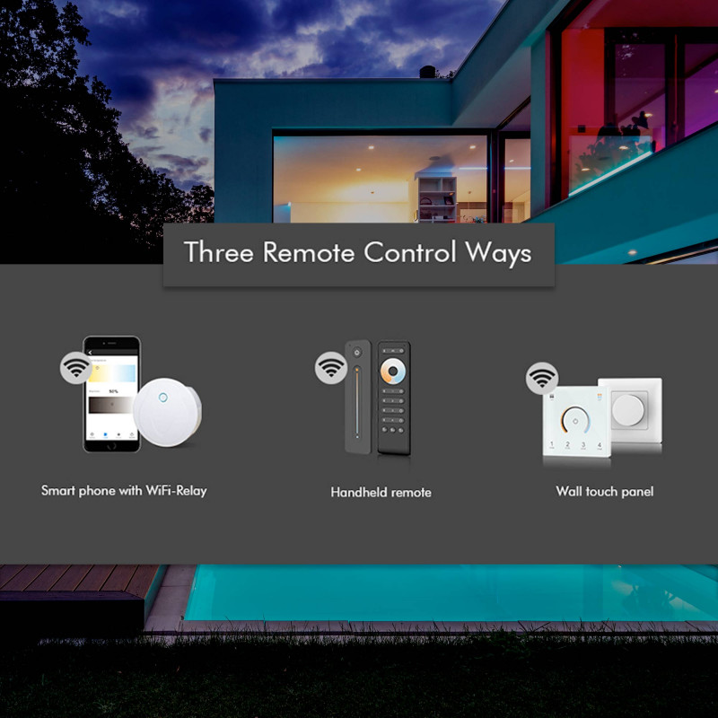 - Telecomando: compatibile con i telecomandi RF Skydance 2.4G. Regola l'illuminazione da qualsiasi luogo con i comandi a mano, a parete o con lo smartphone (aggiungendo un gateway Wi-Fi).