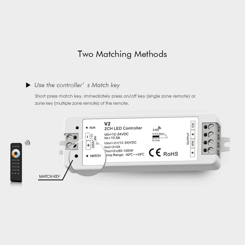 Controller CCT 12-24V DC - 2 canali - 5A/canale - RF 2.4GHz - Skydance