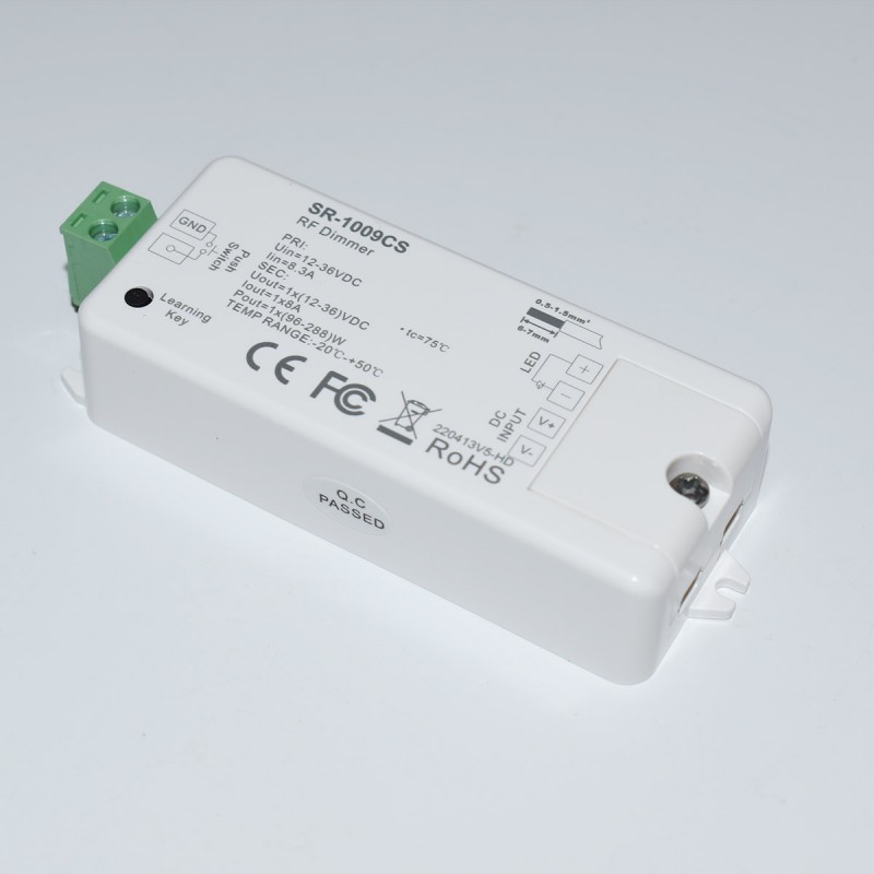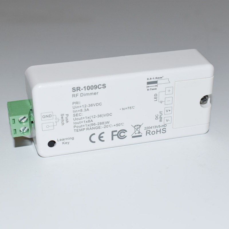 - Controllore RF a 1 canale a tensione costante 12-36 V, massimo 8 A per canale.