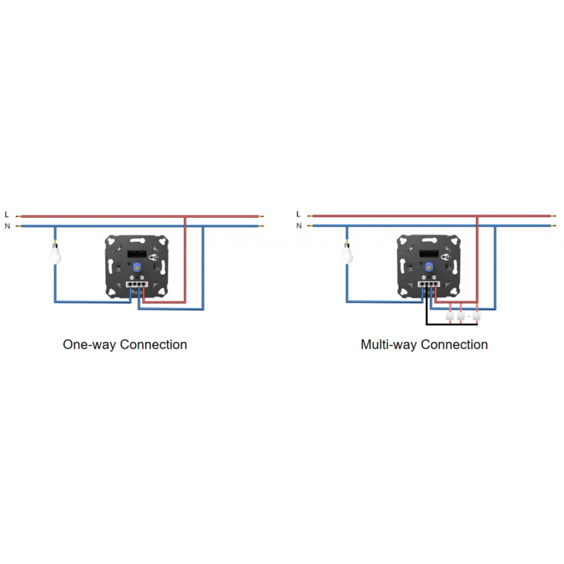 L'installazione con una tensione di 230V deve essere effettuata da un professionista qualificato. Non è possibile collegare più di un dimmer in parallelo per lavorare con lo stesso carico da due punti.