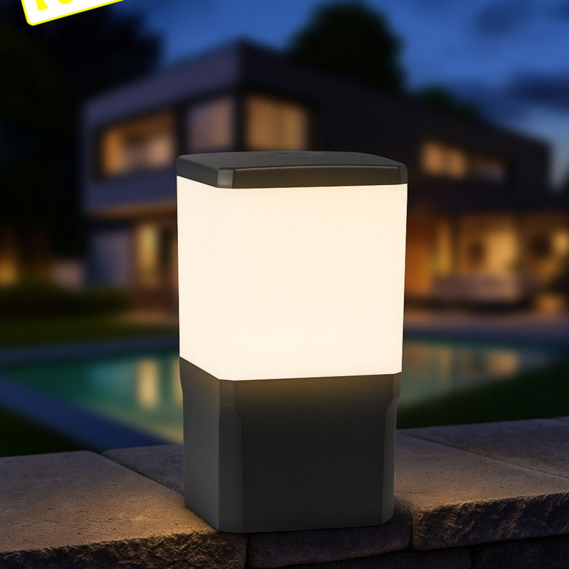Dissuasore di illuminazione per vialetti di piccole dimensioni (25 cm), dal design moderno, realizzato in resina antiurto, resistente alla ruggine, alla corrosione e ai raggi UV.