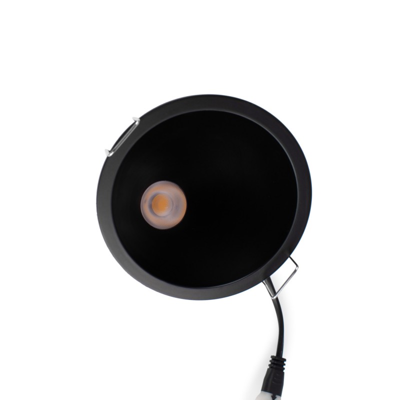 È possibile scegliere tra una temperatura calda di 2700 gradi Kelvin e una temperatura neutra di 4000 gradi Kelvin. Per una stanza è più consigliabile scegliere una tonalità calda, che fornisca un'atmosfera piacevole e confortevole. Per le aree in cui si lavora o che necessitano di un'illuminazione più potente, come ad esempio nei negozi, la luce più adatta è quella neutra. Il downlight LED è perfetto per l'incasso, poiché non richiede un foro profondo. Il diametro complessivo del faretto è di 85 mm e il diametro di taglio per il soffitto è di 75 mm.